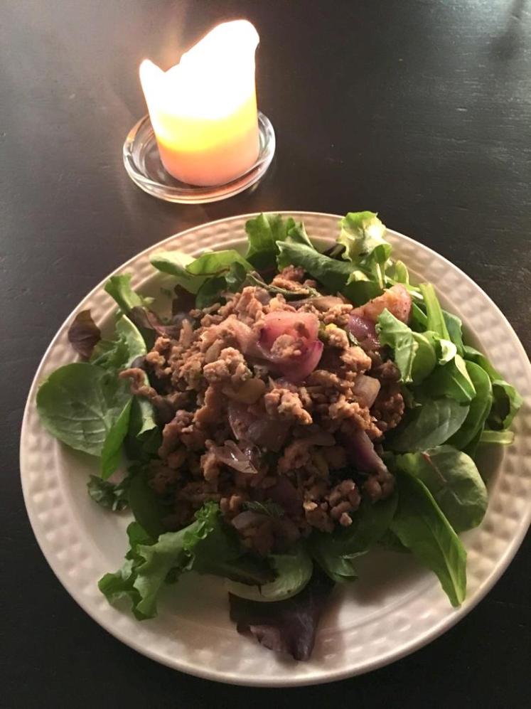 Serve on a large plate of green salad and finish with balsamic vinegar. A simple tasty, carb free meal in our awesome home in Tuscany.