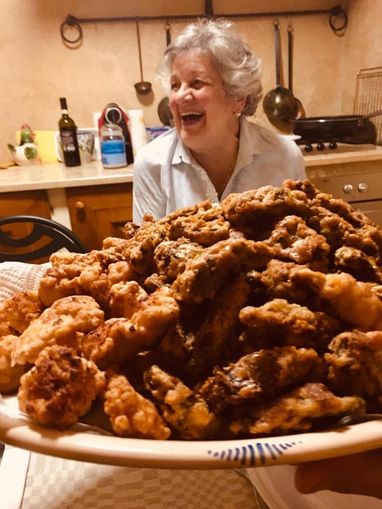 Last month was the coldest and wettest month of May Italy has seen in 30 years. Thanks to this strange weather the artichokes season lasts longer. Mamma Anna, mother of our friend Lucia, is a passionate cook and prepared us her fried artichokes.