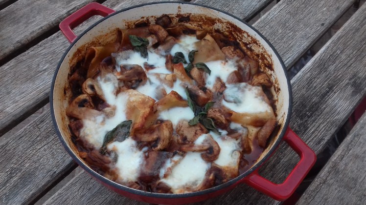 Chop and fry 4 garlic cloves, 1 chili and 1 onion in a drizzle of olive oil. Add 2 table spoons of good quality balsamic vinegar ( instead of red wine). Add 1 can of tomatoes and allow to simmer for approximately 15 mins. Add a handful of chopped fresh basil. Mix with 200 grams of smoked herring. Taste, add pepper and salt ( be careful, herring is already really salty). Mix pasta with sauce in an oven dish. Spread some mozzarella and fresh basil. Grill in the oven for 15 mins.