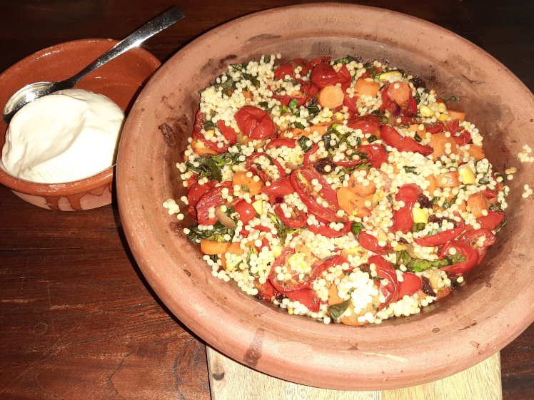 During my last visit to Belgium I found some lovely moghrabieh. Couscous is quicker but moghrabieh has the looks.