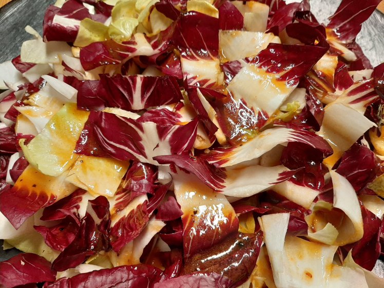 and a chicory salad (mixed chicory and radicchio) with an awesome dressing.