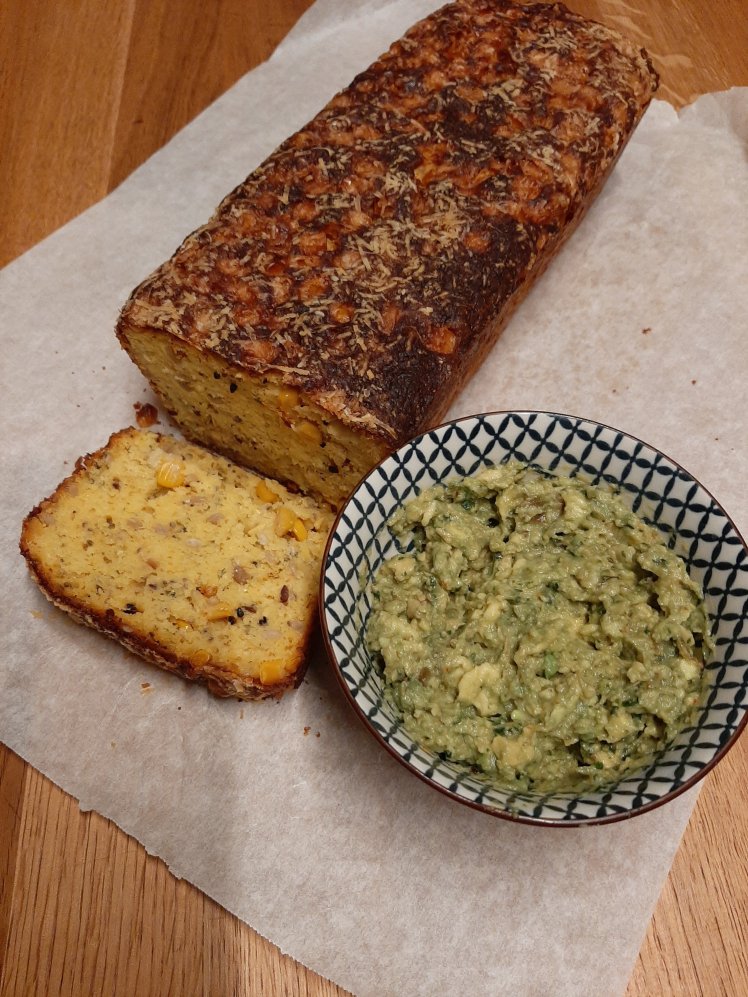 What did I use : 150 grams of self raising flour, 170 grams of polenta ( corn flour), 1/2 teaspoon of baking powder, 2 table spoons of honey, 350 grams of yoghurt, 2 eggs, 110 grams of melted butter, 1 small can of drained corn seeds, 60 grams of mixed seeds 1 finely chopped onion, 4 table spoons of chopped parsley, 50, grams of grated parmigiano.