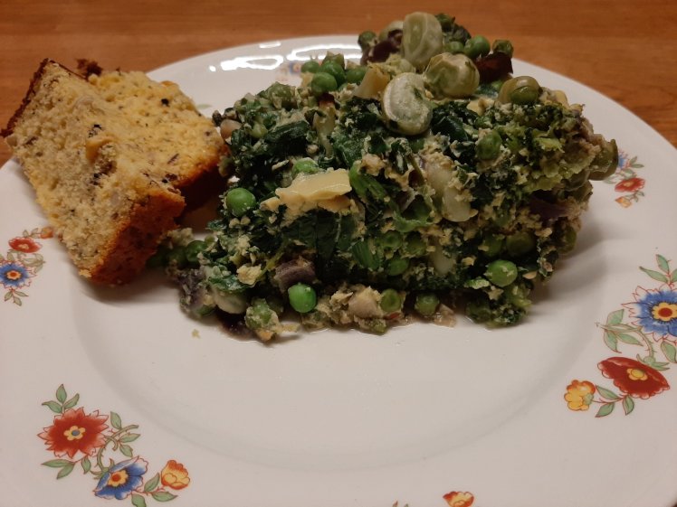 The world is opening itself slowly, and who knows for how long…Anyway, I decided to check my small freezer before making my shopping list. Leftovers of broccoli, spinach, peas and beans (fave) will end up in a frittata, perfect for dinner and for lunch the following day.Remove the vegetables from the package. Defrost and drain to remove the extra liquid. Chop and fry 1 red onion, 4 garlic cloves and 2 small chili in a drizzle of olive oil. Use a pan which can also be used in the oven. Fry and stir for a few mins. Add 1 table spoon of dried oregano. Add a mixture of 5 eggs, 100 grams of ricotta, fresh parsley, pepper, salt and 2 table spoons of grated parmesan ( or another cheese). Bake slowly and stir now and again. Once the frittata becomes firmer, stop the fire. I prefer to finish the dish in the oven, with a lid if you prefer a smooth frittata.Serve with a salad. Prepare a long shopping list for the following week.