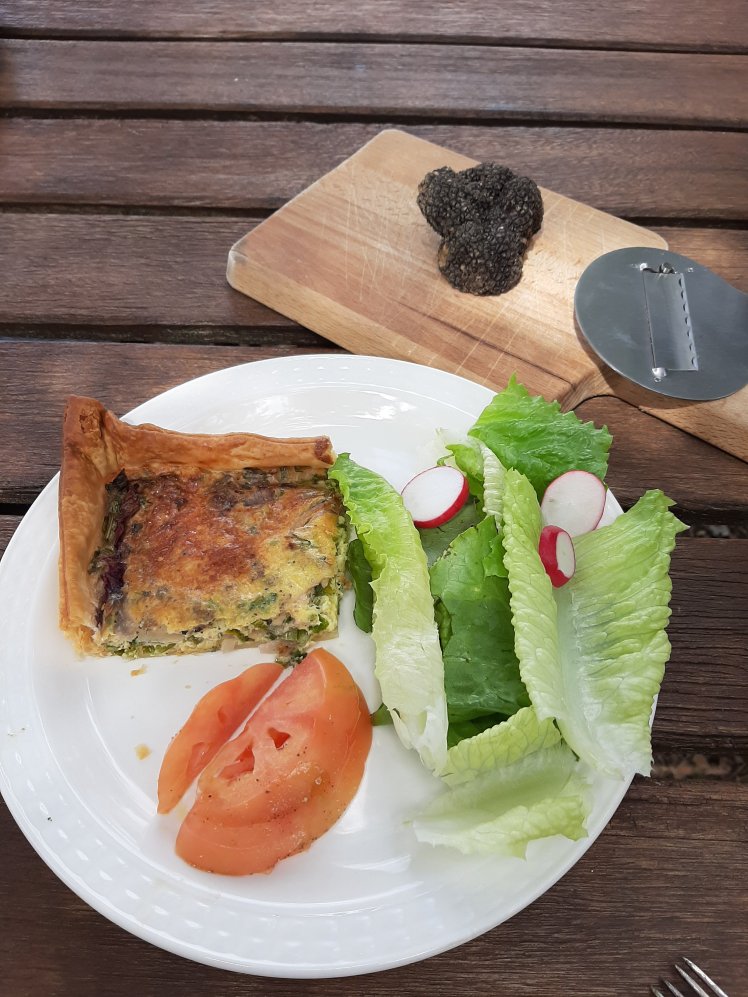 Today’s lunch is a quiche, made with usual and unusual ingredients.