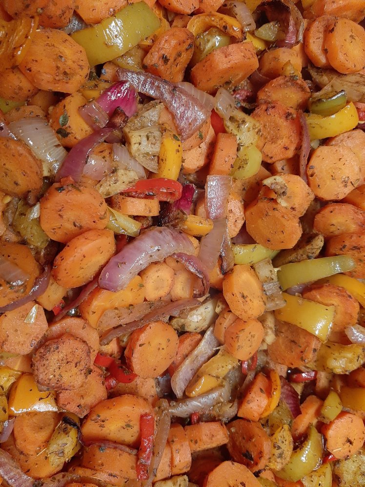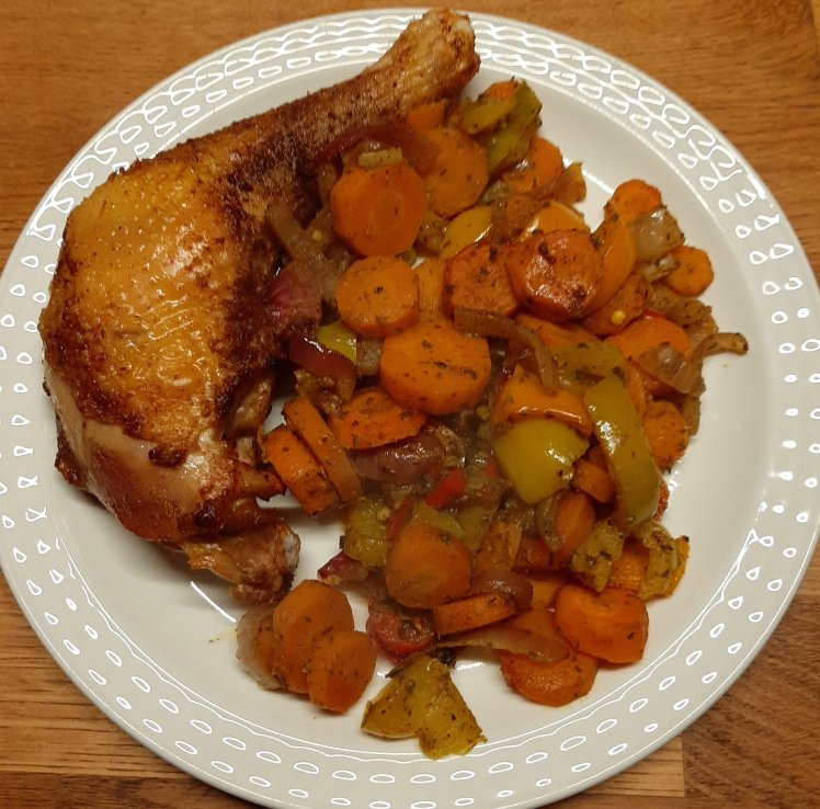 Health wise I pretty sure docV is doing great. 5-6 k of running every 2 days, regular walks with Oskar and training arm and abdominal muscles every other 2 days. Kcal wise I could consider to pay more attention. ‘A drizzle of olive oil’, some nuts, and, sadly enough, some cheesy snack in between, there is room for some improvement ( not to mention my love for red wine).Let’s try…Use a spoon for the drizzle. Prepare dinner in advance to avoid extra snacking while cooking, restrict wine for weekends and specials.For tonight’s dinner, clean and chop 1 kilo of carrots and 1 large bell pepper. Put in a large oven dish. Add 4 chopped garlic cloves, 1 chopped chili, 4 cm of fresh ginger and 1 chopped red onion. Add 1 table spoon of curry powder, 1 table spoon of dried oregano and 3 table spoons of olive oil.Mix. Bake at 200° for 1h. Stir halfway. Cover with aluminium foil to prevent evaporation. Finish with 1 table spoon of soya sauce.Serve with grilled chicken and grilled vegetarian ‘burger’.PS While cooking, write a blog post, wash dishes, clean the kitchen, plan dinner for next day, do some video calling, read a book….and if you’re really craving, eat a carrot 😉.