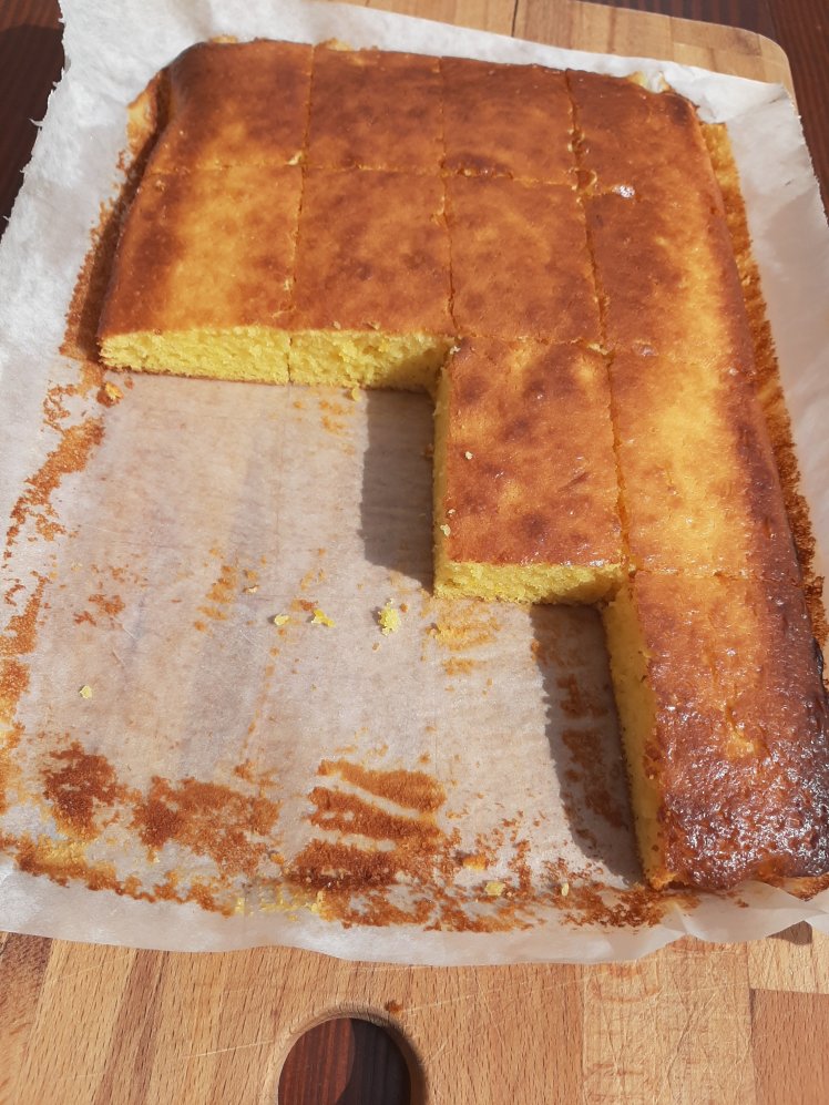 White chocolate is sweet by itself. When I saw this recipe in the magazine of the supermarket Coop, I knew already that the indicated amount of sugar would be exaggerated ( especially because italian desserts are often super sweet, dolcissimo).Seeve 150 grams of flour 00. Add 6 grams of vanillated baking powder and a pinch of salt. Mix with the zeste of 2 untreated lemons.Melt 100 grams of white chocolate with 100 grams of butter at low speed in the microwave. Once melted, stir and allow to cool down until lukewarm. Add 60 grams of vanillated powder sugar and 3 eggs, one by one. Whisk until you obtain a foamy consistency. Add the flour mixture. Mix. Add the juice of the 2 lemon. Continue to mix until you obtain a smooth and airy consistency.Cover a small rectangular oven dish (mine is 28 to 19 cm) with greased baking paper. Pour the mixture in the tray. Bake at 180° for 20-25 minutes. Cool down and cut in rectangular pieces and share.