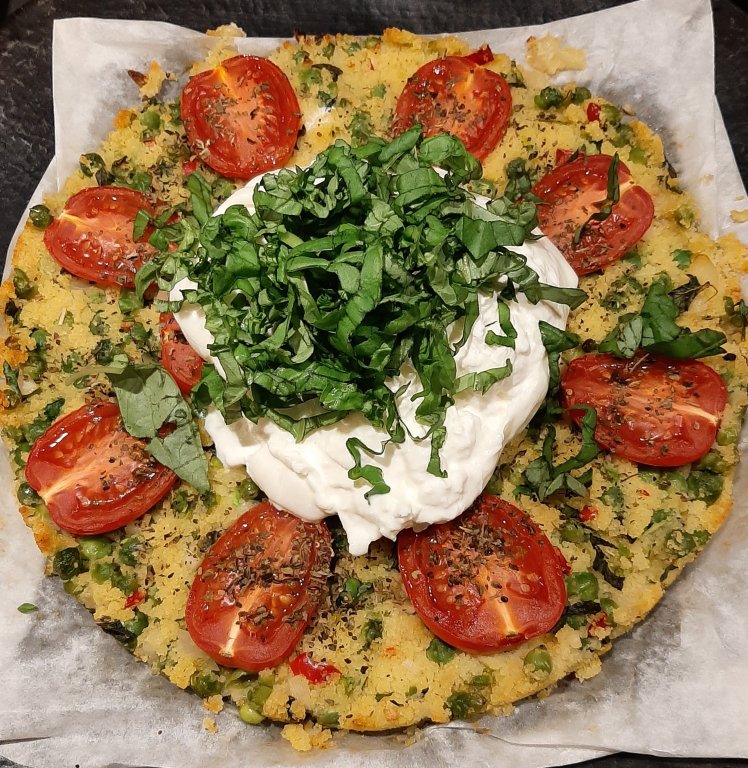 Fresh peas and burrata are a perfect match for an usual presentation today.