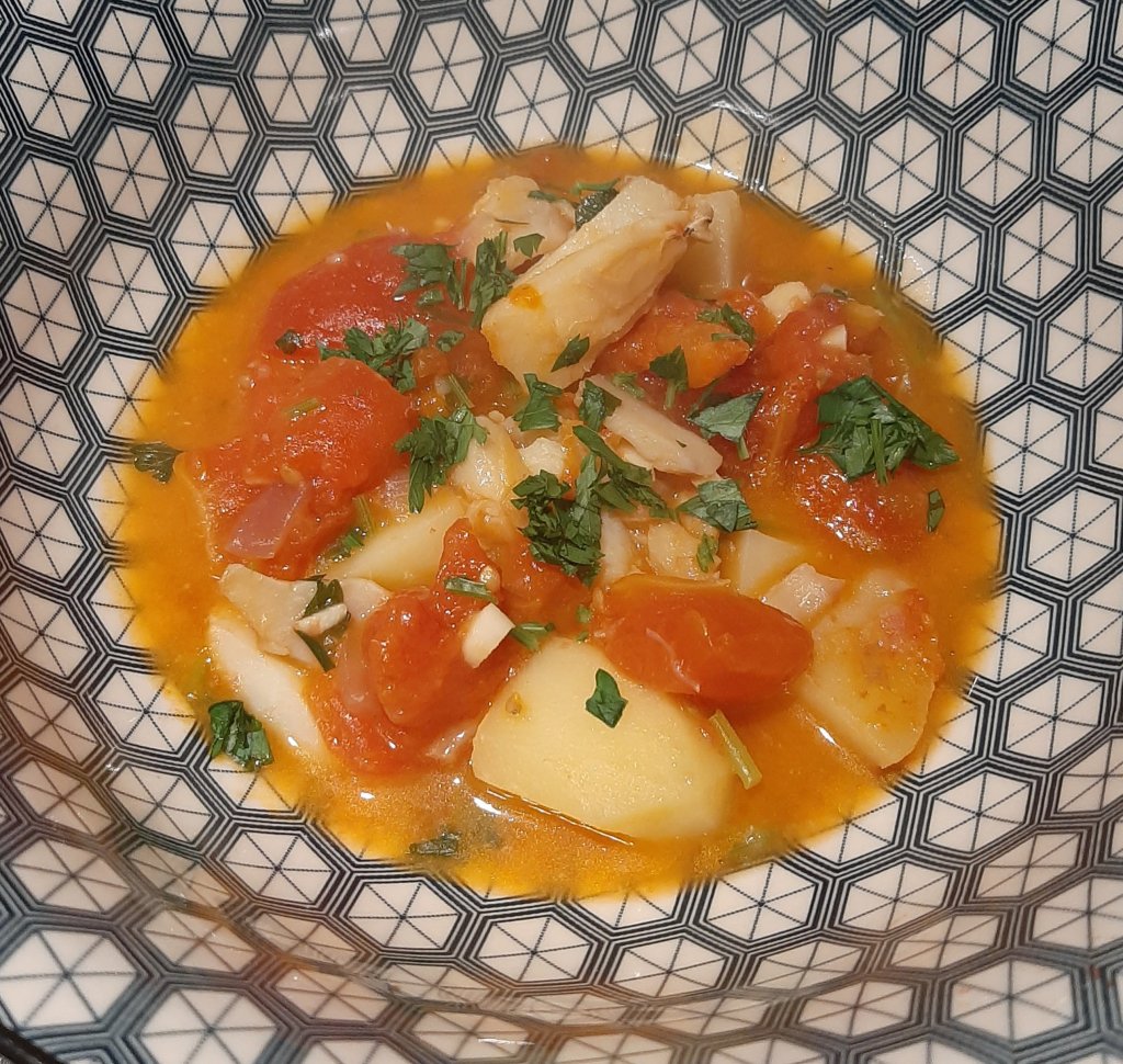 Heat a pan with 2 table spoons of olive oil. Start with the fish. Bake and turn. Add the potatoes. Bake and stir. Add the onion, garlic and chili. Bake and stir. Add the tomatoes. Stir. Allow to simmer for 15-20 minutes until fish and potatoes are ready. Taste, season with pepper and salt. Finish with fresh parsley. Enjoy ‘Baccalà alla Fiorentina’. Simple Italian cooking!