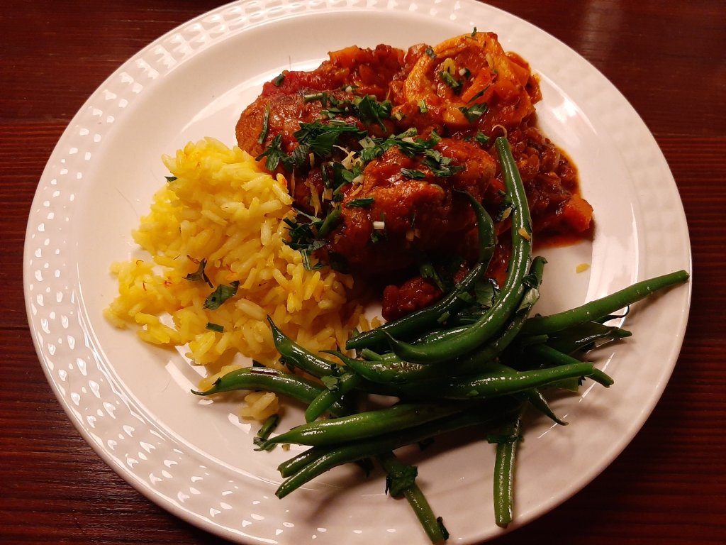 Guests are coming and going. Cooking for 4p is for certain recipes much easier than for 2p. To please my mother in law, I prepare a real Italian classical dish, ossobuco. Iris doesn’t eat meat but doesn’t mind eating vegetables cooked together with meat.