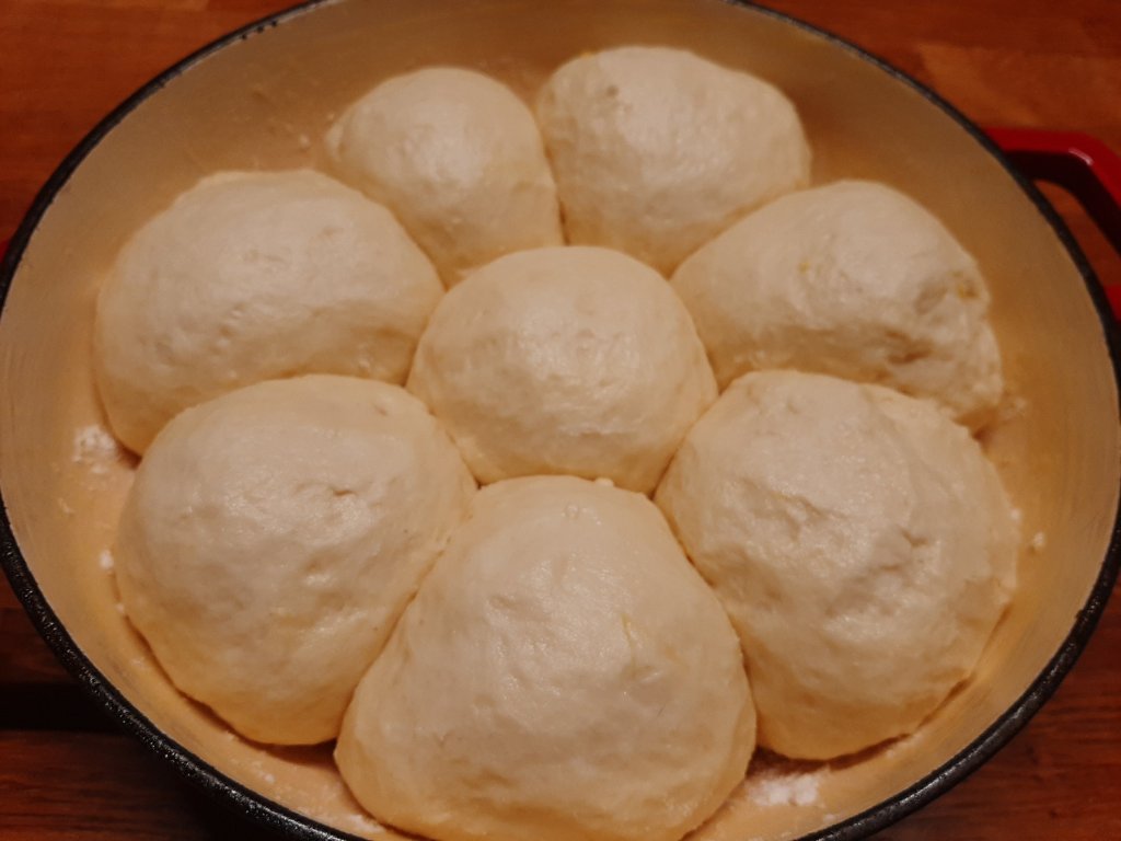 Dissolve the yeast in the lukewarm milk. Add the egg, sunflower oil, kefir, sugar and alternative and the zeste. Stir. Add the flour in smaller portions. Mix and knead until you have an elastic dough. Put in the bowl. Cover with a wet towel. Allow to rise on a warm spot for at least 2h. Knead again. Divide in 8 equal portions. Grease a round ovendish of approximately 22cm. Spread some flour. Put the 8 balls in the oven dish. Cover with the wet towel. Allow to rest for at least 30-60 minutes in a warm spot. Bake in the traditional oven at 180° for 30-35 minutes. Remove the brioche from the pan. Brush some water on the surface. Cool down or eat immediately.