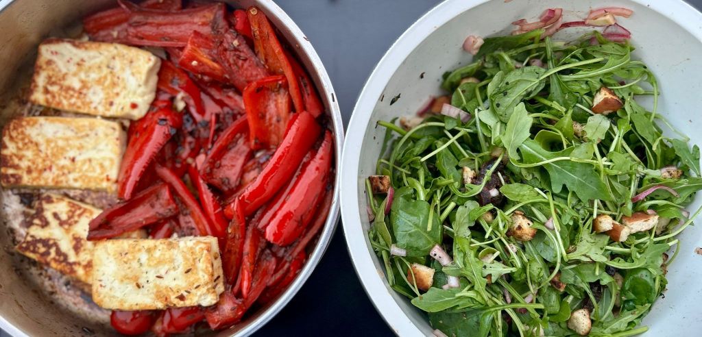 The variety of grill cheeses, such as halloumi, is large. Although it’s not the healthiest ingredient regarding saturated fat and salt, we both love it, and we eat it as protein source.