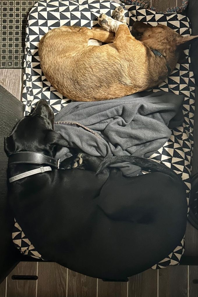 We crossed a few more borders and went up north again to collect our new little friend Ziggy, a young street dog who found us on one of our city walks. He now has a passport and a chip and is vaccinated. His arrival made us change our travel plans. Today we visited Croatia’s capital, Zagreb. We did +/-20000 steps and Ziggy probably 3 to 4 fold. Oskar adopted Ziggy with his whole ❤. While I’m cooking they both fell asleep on the same cushion.