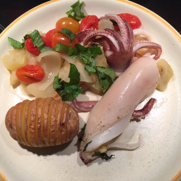 The first time we ate those partially sliced potatoes was after reading a recipe in one of Nigella Lawson cookbooks, since then they are called Nigellas or (since we know she didn’t invent the technique;-)) Hasselback potatoes. Take small or medium sized potatoes, wash them and make multiple incisisions close to each other but!!!! don’t … More Squid, fennel, tomatoes and Hasselback potatoes