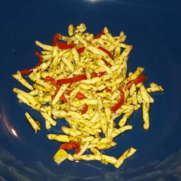 Halve 2 large bell pepper and remove the seeds. Chop and fry 1 shallot, 4 garlic cloves and 1 pepperoncini. Add 400 grams of minced meat ( lam would probably be the best choice but not for Iris, and thus I use my classical chicken mixed with Italian sausage meat) and bake. Add a handful … More Roasted bell pepper on a green bed