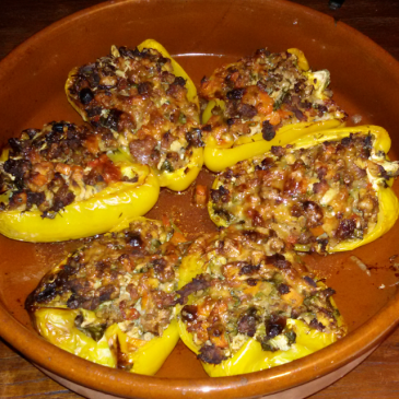 Thanks to being addicted to cooking magazines I get familiar with other cooking styles. This recipe is originally made with rocoto, a spicy pepper which needs to be cooked in a sweet and sour (vinegar and sugar) liquid before filling in. I use normal bell pepper instead, which doesn’t need to be cooked in advance. … More Peruvian cuisine ?