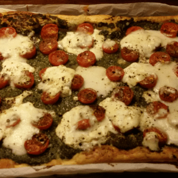 Put 100 grams of rucola, 2 garlic cloves, 1 spicy little pepper in a small blender. Add some olive oil to obtain a smooth, bright green pasta. Taste, add pepper and salt. Spread the rucola pesto on a rectangular puff pastry. Finish with 250 grams of halved cherry tomatoes and some dried oregano. Put in … More Movie and a dinner