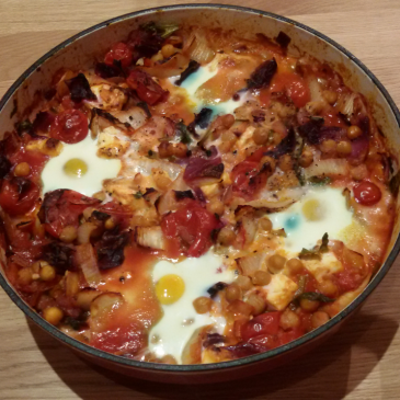 Iris’ father is visiting us. He is one of my loyal followers. He has no choice, docV cooks and decides what he will eat, he can only decide how much ;-). In the delicious.nl I find another version of shaksuka, with chickpeas. For 2-3p, chop 4 garlic cloves and 2 medium sized bell peppers. Put … More Shakshuka for daddy Michel