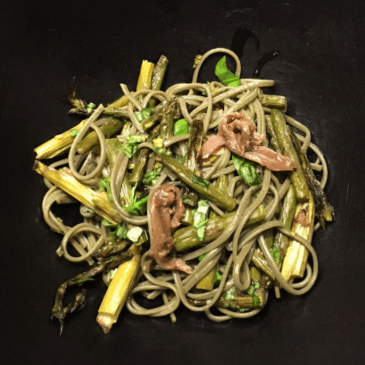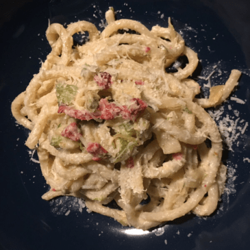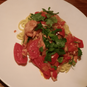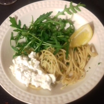 As efficient is our painting process, as chaotic is my evening menu. For tonight I prepare a simple pasta. We had already a large vegetable quotum during our lunch, so we can be a bit less strict. Boil a portion of thin pasta for 2p. Drain and keep some of the liquid. Chop and fry … More Chaotic but healthy cooking